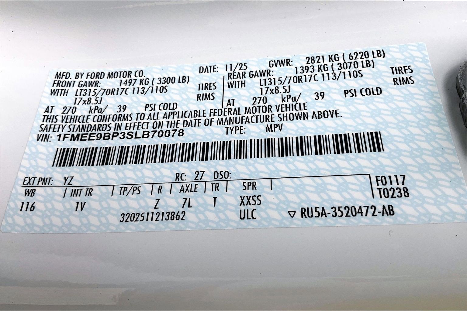 - Tires: LT285/70R17 A/T -inc: full size spare tire w/TPMS