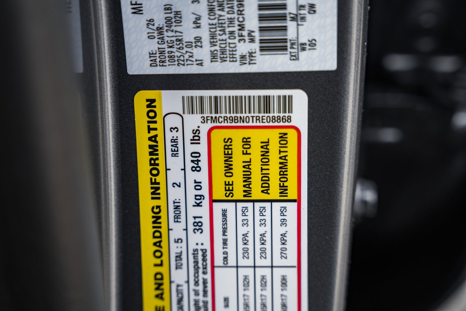 - Tires: 225/65R17 102H All-Season BSW