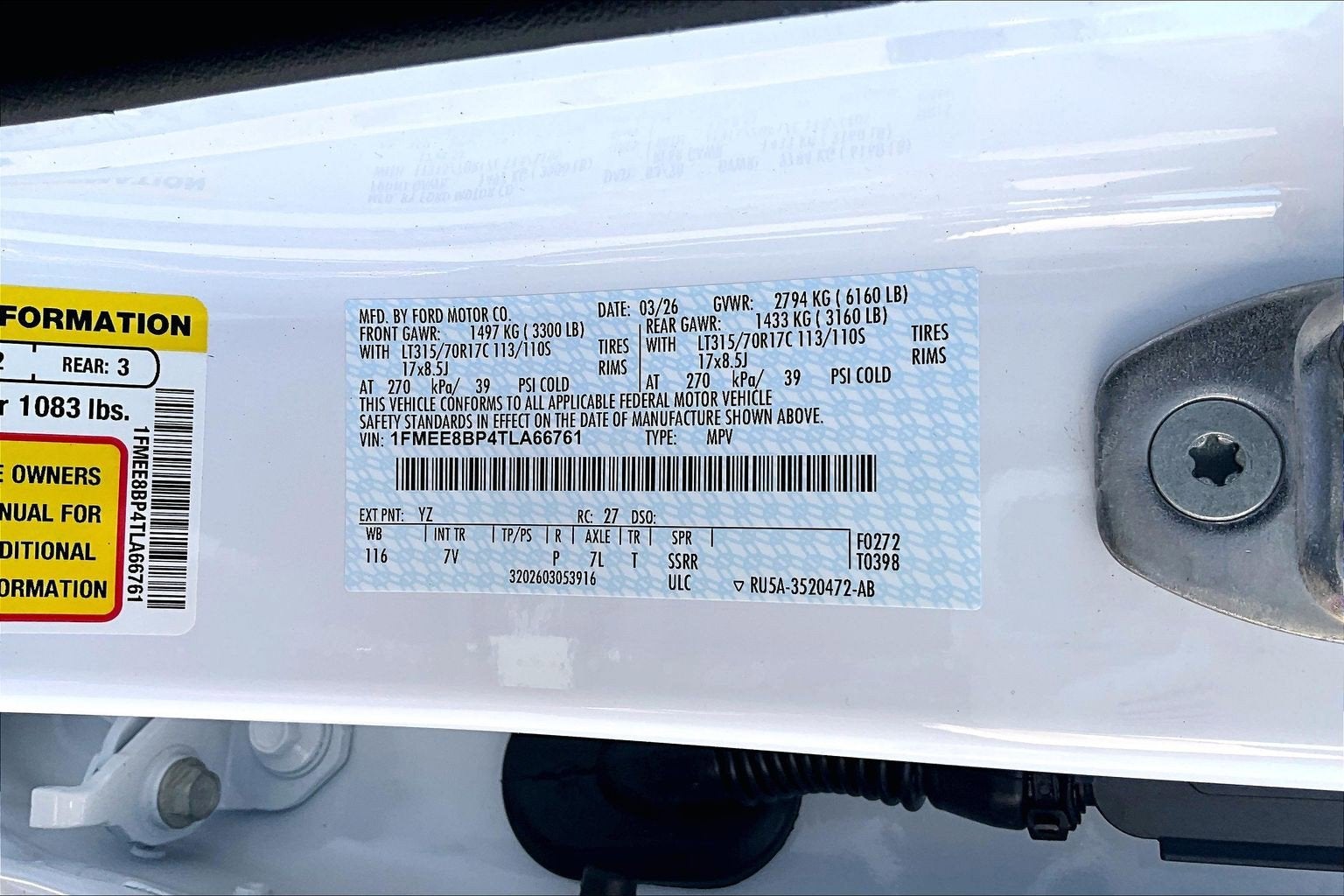 - Gross Axle Wt Rating - Front (lbs): 3270