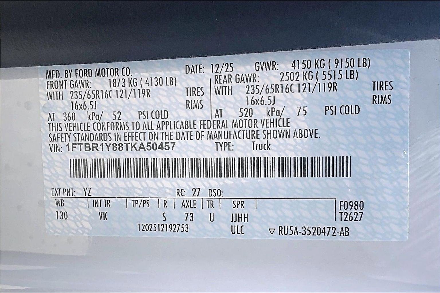 - Gross Axle Wt Rating - Front (lbs): 4130