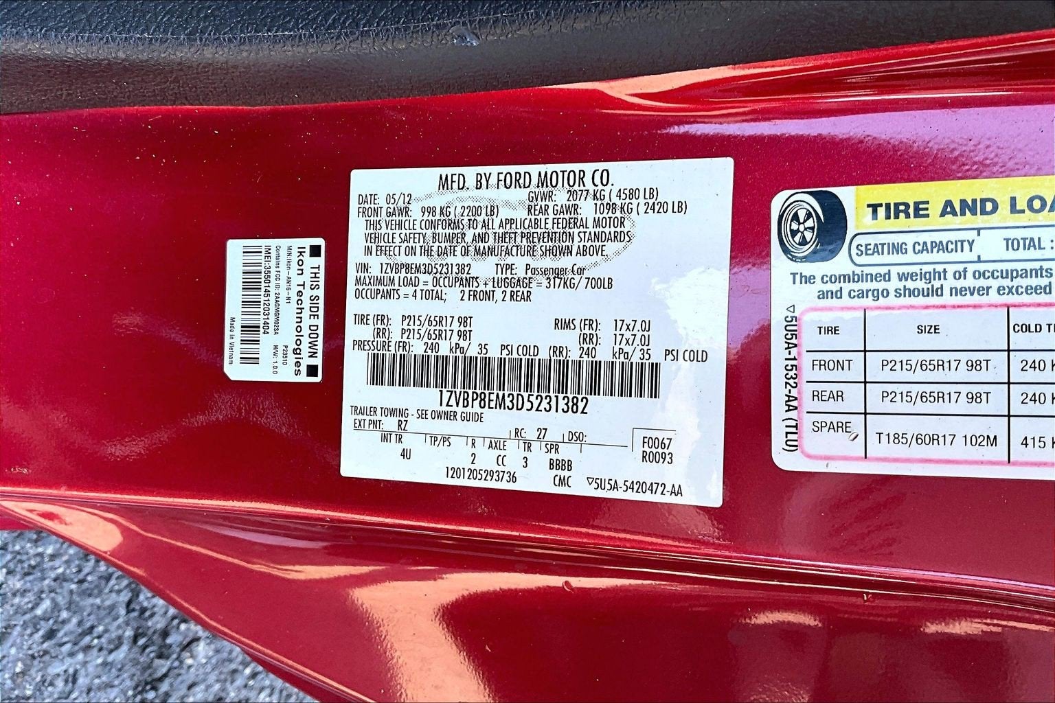 - Vehicle Name: Ford Mustang
