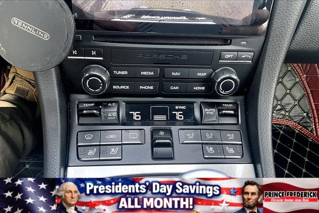 - Radio: Porsche Communication Management (PCM) -inc: CD/DVD drive, 11 GB internal jukebox storage, 2 USB slots, 2 SD card slots, Bluetooth® hands-free mobile phone connection using Hands Free Profile (HFP), Porsche Car Connect (including Carfinder, remote vehicle status, remote services, and Porsche Vehicle Tracking System (PVTS)), Connect Plus module featuring online navigation, mobile phone preparation, audio interface, Apple CarPlay, wireless internet access, SiriusXM satellite radio w/3-month trial, HD Radio receiver, Sound Package Plus sound system featuring 8 Speakers, 150 Watt output and universal audio interface (AUX-IN, USB, iPod)