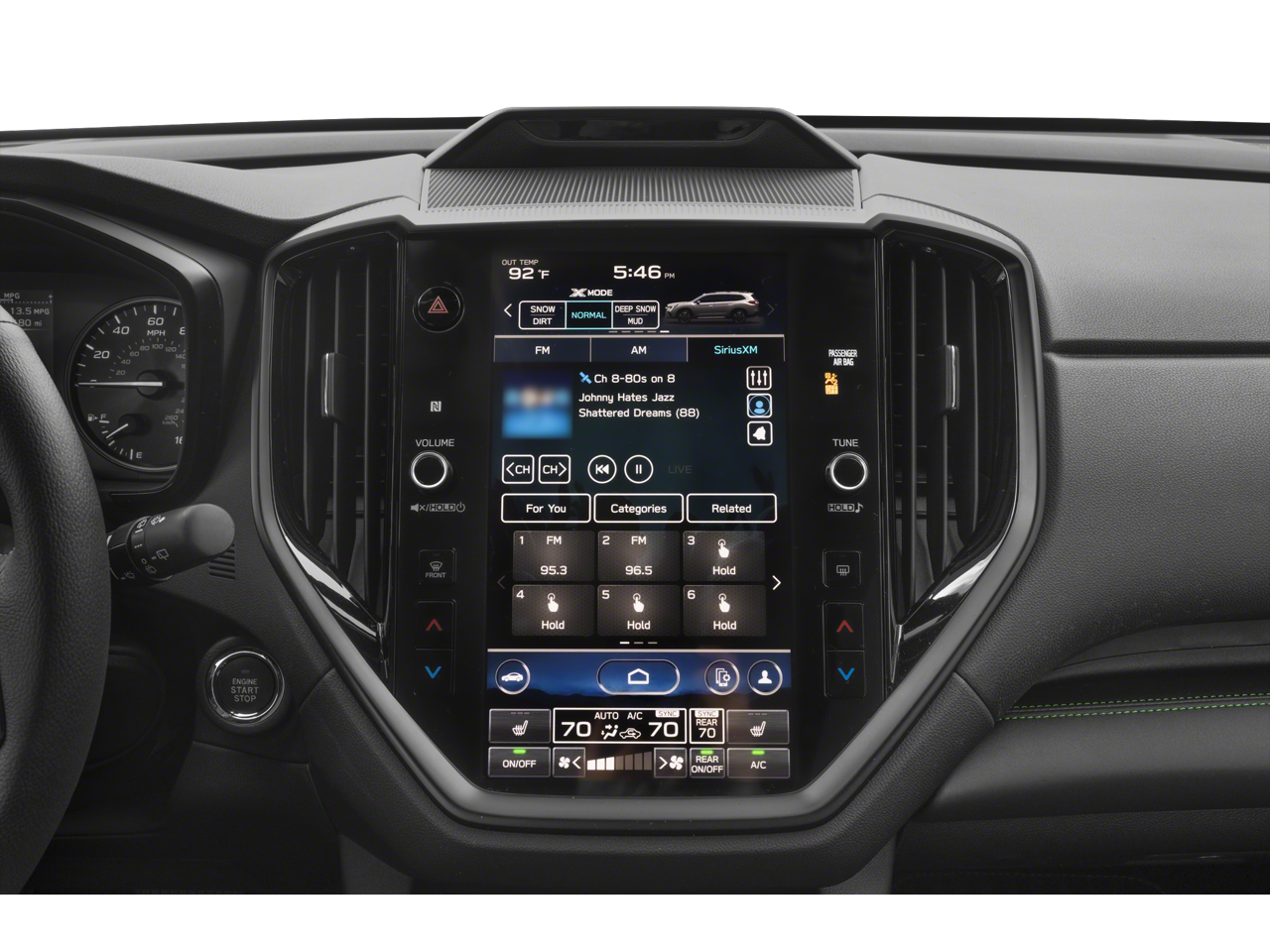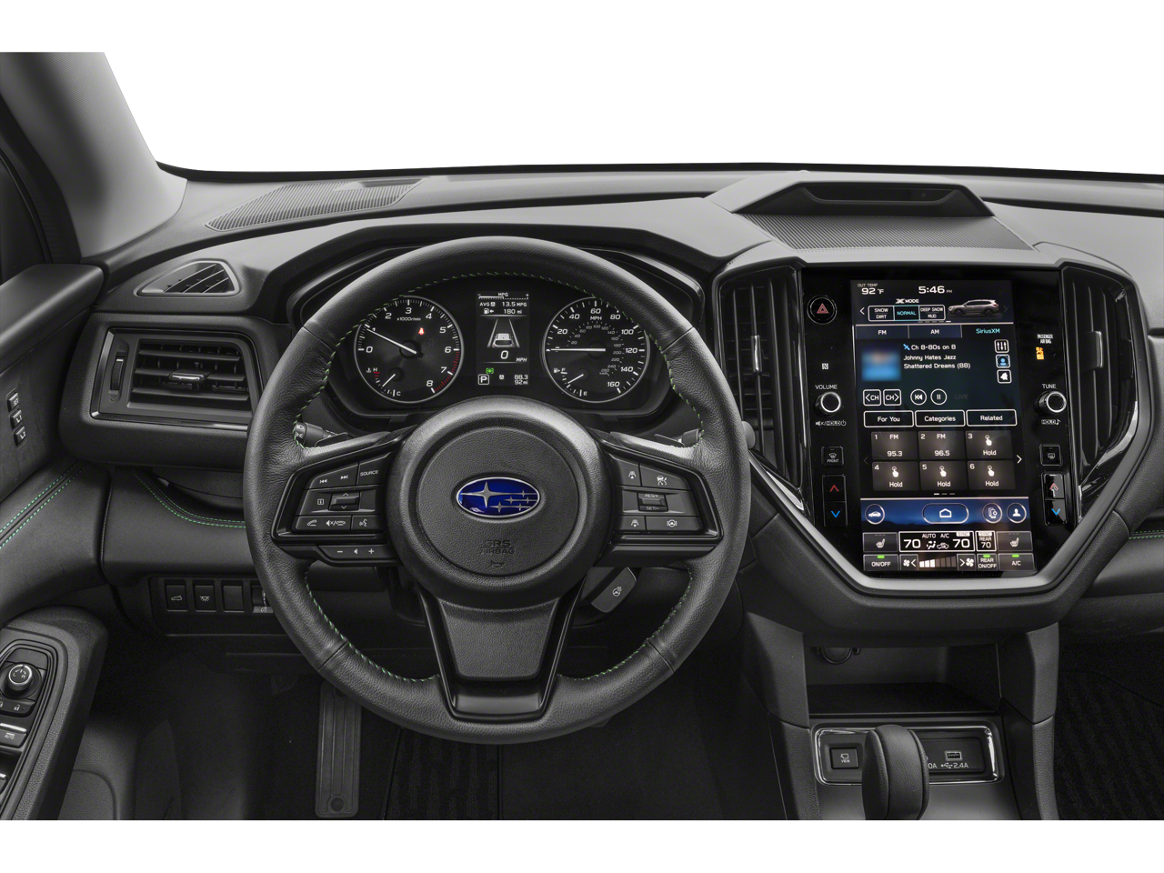- Radio: Subaru STARLINK 11.6" Multimedia Nav System -inc: AM/FM stereo HD Radio, multi-touch gesture high resolution display screen, voice activated controls for radio and navigation, Bluetooth® audio streaming and hands-free phone connectivity w/SMS text messaging connectivity (refer to subaru.com for cell phone compatibility), Near Field Communication (NFC), TomTom navigation software w/What3Words, iPod control capability, SiriusXM All Access radio (4 months free trial/subscription required after), SiriusXM Traffic (3 years free trial/subscription required after), SiriusXM Travel Link (3 years free trial/subscription required after), smartphone integration for Android Auto and Apple CarPlay w/full screen view and wireless connection and STARLINK cloud applications, USB audio system update, TomTom navigation system update w/USB/Map Over The Air (MOTA) (3 years free map updates), steering wheel controls for audio and Bluetooth®, harman/kardon quantum logic surround sound speaker system w/14 speakers, subwoofer and harman/kardon 792 watt equivalent maximum output amplifier, 3.5mm illuminated auxiliary input jack, and illuminated USB A and C input/charge ports